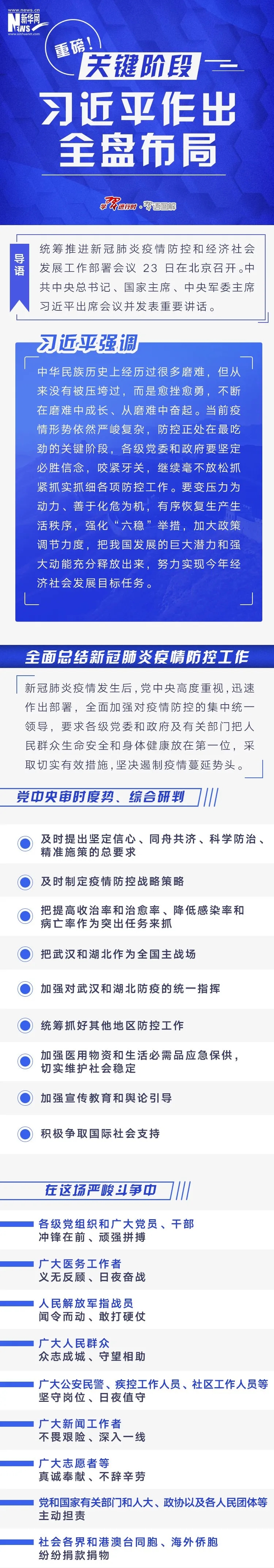 2月23日,統(tǒng)籌推進(jìn)新冠肺炎疫情防控和經(jīng)濟(jì)社會(huì)發(fā)展工作部署會(huì)議在北京召開。中共中央總書記、國家主席、中央軍委主席習(xí)近平出席會(huì)議并發(fā)表重要講話。