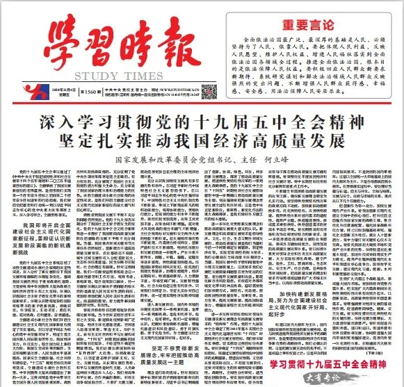 一分部署,九分落實,黨的十九屆五中全會描繪的宏偉藍圖要靠全黨全國各族人民的辛勤工作和努力奮斗去實現(xiàn)。我們要緊密團結在以習近平同志為核心的黨中央周圍,在黨中央集中統(tǒng)一領導下,深入學習貫徹習近平新時代中國特色社會主義思想,增強“四個意識”、堅定“四個自信”、做到“兩個維護”,不忘初心、牢記使命,同心同德、頑強奮斗,不斷提高貫徹新發(fā)展理念、構建新發(fā)展格局的能力和水平,為奪取全面建設社會主義現(xiàn)代化國家新勝利作出應有的貢獻。