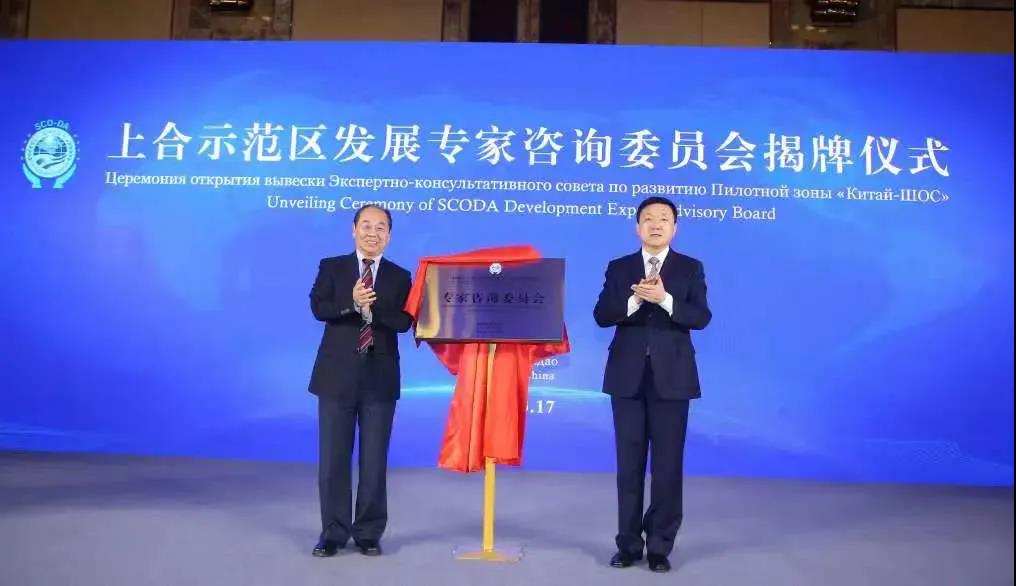 趙艾、劉建軍共同為中國-上合示范區(qū)發(fā)展專家咨詢委員會揭牌。劉建軍為專家咨詢委員會成員逐一頒發(fā)聘書。中國-上合示范區(qū)管委會副主任孟慶勝介紹中國-上合示范區(qū)以及中國-上合示范區(qū)發(fā)展專家咨詢委員會相關情況。