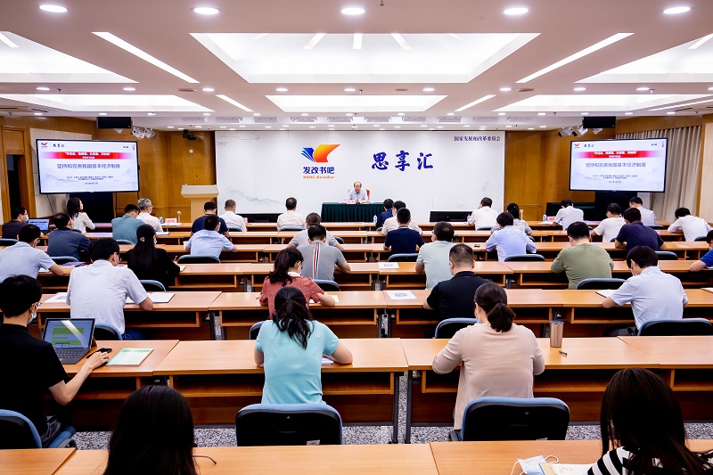 7月13日,國家發(fā)改委請我會會長彭森在委“發(fā)改書吧思享匯”“學黨史、悟思想、辦實事、開新局”系列第6期學習交流活動上,圍繞“堅持和完善我國基本經濟制度”主題作專題講座,國家發(fā)改委黨組成員、秘書長趙辰昕等有關領導同志出席聽講。