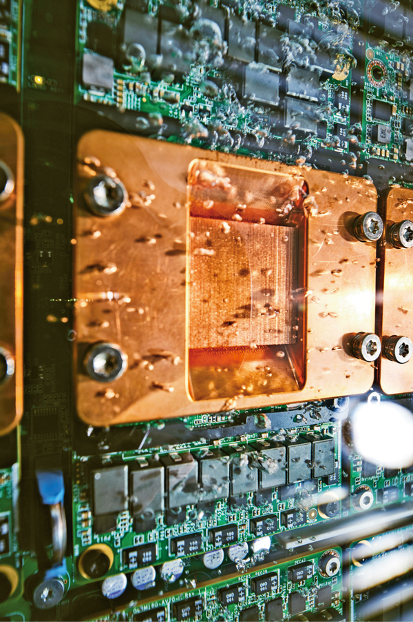 數(shù)字經(jīng)濟對經(jīng)濟社會的引領帶動作用日益凸顯。圖為2021年11月拍攝的液冷計算節(jié)點,能夠?qū)?shù)據(jù)中心能效比PUE降至1.1以下,比傳統(tǒng)風冷技術節(jié)電20%?!≈袊茖W院供圖