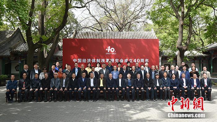 2023年4月19日,中國經(jīng)濟(jì)體制改革研究會(huì)在北京召開成立四十周年座談會(huì),圖為與會(huì)嘉賓合影。中新網(wǎng)記者 李駿 攝