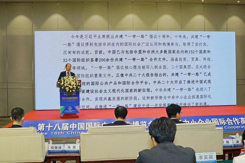 趙艾講到,今年是習(xí)近平主席提出共建“一帶一路”倡議十周年。十年來,共建“一帶一路”倡議得到包括非洲在內(nèi)的國際社會(huì)廣泛認(rèn)同和熱情參與,取得了實(shí)打?qū)?、沉甸甸的成就。中共二十大開啟了推進(jìn)中國式現(xiàn)代化,全面建設(shè)社會(huì)主義現(xiàn)代化國家的新征程。中非共建“一帶一路”也進(jìn)入了深化務(wù)實(shí)合作,實(shí)現(xiàn)共贏發(fā)展的新階段。這種新形勢(shì)為中非中小企業(yè)拓展國際化互利合作空間,在推進(jìn)“一帶一路”建設(shè)中進(jìn)一步發(fā)揮重要作用提供了新機(jī)遇。