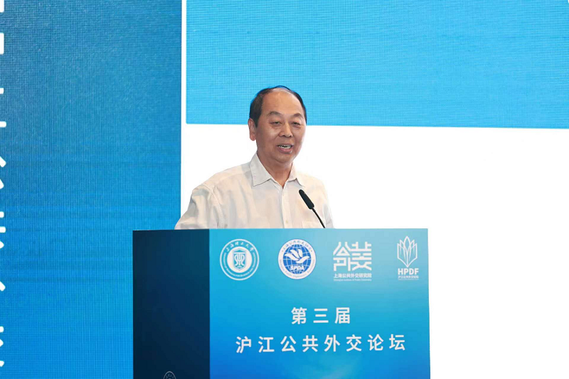 第三屆滬江公共外交論壇以“‘一帶一路’十周年展望:新機遇新發(fā)展”為主題,國務(wù)院新聞辦公室原主任、上海公共外交研究院專家咨詢委員會主席趙啟正,十二屆全國人大外事委員會副主任委員、藍迪國際智庫專家委員會主席趙白鴿,全國政協(xié)常委、上海公共外交協(xié)會會長、上海公共外交研究院理事長周漢民,上海理工大學(xué)黨委書記王凌宇及我會科研部主任南儲鑫等出席論壇,致辭、演講或發(fā)言。