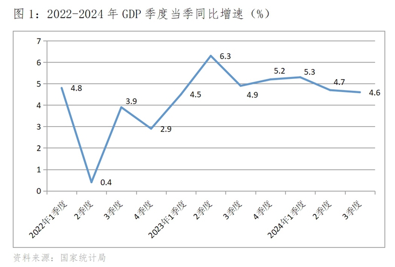 (三)增速上年同期基數(shù)較高。上年四季度GDP增速是自2022年以來季度GDP第二快的增速,同比增長5.2%,第一快的增速是上年二季度的增速,增長6.3%。由于上年二季度增速基數(shù)較高,今年二季度GDP增速為4.7%,回落了1.6個(gè)百分點(diǎn)。而如果今年四季度GDP增長5.5%,意味著GDP增速比上年四季度回升了0.3個(gè)百分點(diǎn)。從這一對(duì)比分析中就可看出,要實(shí)現(xiàn)今年四季度GDP增長5.5%還面臨著基數(shù)較高因素的影響。