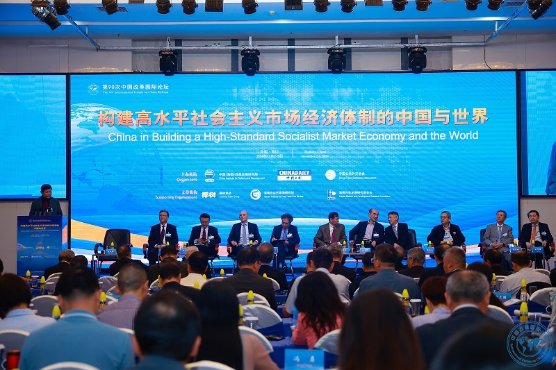 為學(xué)習(xí)貫徹黨的二十屆三中全會(huì)精神,以進(jìn)一步全面深化改革推進(jìn)中國式現(xiàn)代化,11月2日,中國(海南)改革發(fā)展研究院、中國日?qǐng)?bào)社、中國公共外交協(xié)會(huì)聯(lián)合主辦的“構(gòu)建高水平社會(huì)主義市場經(jīng)濟(jì)體制的中國與世界——第90次中國改革國際論壇”在海南??谡介_幕。來自32個(gè)省、市、自治區(qū)、特別行政區(qū)的政府、高校、科研機(jī)構(gòu)、企業(yè)和媒體代表以及24個(gè)國家和國際組織、使領(lǐng)館代表參加本次國際論壇。海南省委書記馮飛在開幕式后會(huì)見世界自由區(qū)組織主席穆罕默德·阿扎魯尼,海南省人民政府省長劉小明出席開幕式并致辭。