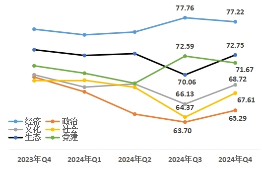 中國經(jīng)濟(jì)體制改革研究會“改革熱度指數(shù)”課題組認(rèn)為,面對當(dāng)前外部環(huán)境變化帶來的不利影響加深,我國經(jīng)濟(jì)運(yùn)行仍面臨不少困難和挑戰(zhàn),但我國經(jīng)濟(jì)基礎(chǔ)穩(wěn)、優(yōu)勢多、韌性強(qiáng)、潛能大,長期向好的支撐條件和基本趨勢沒有變。從改革熱度指數(shù)看,政治、文化、社會、生態(tài)領(lǐng)域熱度值提升,經(jīng)濟(jì)、黨建領(lǐng)域熱度值和宣傳度熱度值略有下降,四季度改革熱度指數(shù)依然保持高位運(yùn)行。2025年是貫徹黨的二十屆三中全會精神的重要一年,隨著各項改革逐步推進(jìn)、一攬子增量政策落地見效,必將為高質(zhì)量發(fā)展和推進(jìn)中國式現(xiàn)代化提供更有力的支撐。