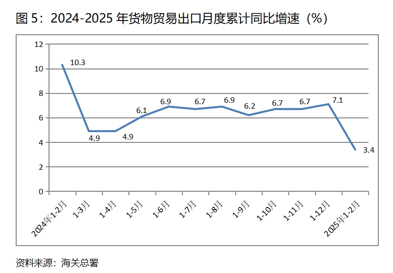 (二)貨物出口增速由升轉(zhuǎn)落。1-2月份,貨物出口同比增長3.4%,比上年1-12月份增長7.1%回落3.7個(gè)百分點(diǎn),1-12月份比1-11月份回升0.4個(gè)百分點(diǎn),呈現(xiàn)出增速由升轉(zhuǎn)落的態(tài)勢。貨物出口對主要貿(mào)易出口經(jīng)濟(jì)體增速全面回落,1-2月份對歐盟出口增長1.8%,比上年1-12月月份回落2.5個(gè)百分點(diǎn);對美國出口增長3.4%,比1-12月份回落2.7個(gè)百分點(diǎn);對東盟出口增長6.8%,比1-12月份回落6.6個(gè)百分點(diǎn);對拉丁美洲出口增長4.4%,比1-12月份回落10.0個(gè)百分點(diǎn)。